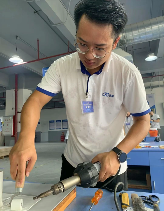 决赛现场上,选手们操作有序,动作娴熟 ,充分展现出技能型人才的风采。经过一番激烈角逐,在考评组的严格考评下,最终杨琛彪 、陈香志 、叶坤夺得高分子 PVC 焊接项目的冠、亚、季军;黄小康 、陈佳琦、陈林获得 喷涂施工项目的冠 、亚 、季军;吴雨见、徐俊峰、丁贵奇则获得了瓷砖修补项目的前三名。